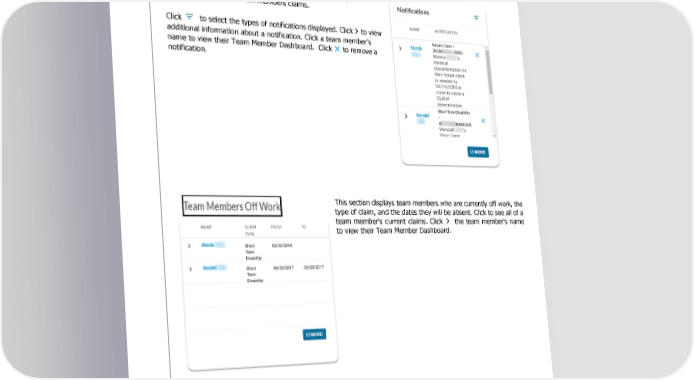 for Disability and Leave of Absence Claims Notifications The Notifications section displays updates and important events regarding your team members claims. to select the types of notifications displayed. Click to view Click additional information about a notification. Click a team member’s name to view their Team Member Dashboard. Click to remove a notification. This section displays team members who are currently off work, the type of claim, and the dates they will be absent. Click to see all of a team member's current claims. Click the team member's name to view their Team Member Dashboard. Sedgwick Copyright © 2019 The information contained herein is confidential and proprietary to Sedgwick. Last Updated March 21, 2019 -3-