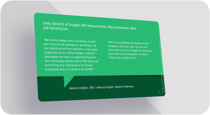 AKey Benefit of Insights ROI Measurement: More Autonomy, More Job Satisfaction . d e v r e s e r “My central budget here is owned by us and I “One of my conditions of staying with the s t h g i r l don’t have to ask anybody for permission. My company, a few years ago, was that I be l A . k r o w boss definitely will not interfere. A very large given some of my own budget for things like t e N s s e n proportion of our central budget is used for innovation and development. It’s been a i s u B ch r developing new tools or experimenting with little tricky holding onto it.” a e s e R l a new technology Another part of ROI which we b o l G e are driving very consciously is to remove Th d n a c. everything where we know it has no ROI.” n I , p u o t r r G o p g e n i R t l y u d s u n t Co S 7 n 1 o 0 t 2 s o t B ghe i s Th In y f b o 7 Head of Insights, CPG / Head of Insights, Health & Wellness OI 1 R 0 2 - © N B t h g i GRr G y C p 32 B Co