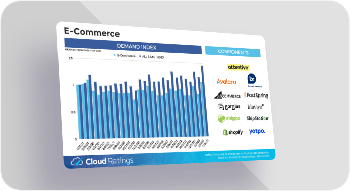 E-Commerce DEMAND INDEX COMPONENTS INDEXED FROM JANUARY 2021 E-Commerce ALL SAAS INDEX 1.5 1 0.5 0 1 1 1 1 1 1 1 1 1 1 1 1 2 2 2 2 2 2 2 2 2 2 2 2 3 3 3 2 2 2 2 2 2 2 2 2 2 2 2 2 2 2 2 2 2 2 2 2 2 2 2 2 2 2 0 0 0 0 0 0 0 0 0 0 0 0 0 0 0 0 0 0 0 0 0 0 0 0 0 0 0 2 2 2 2 2 2 2 2 2 2 2 2 2 2 2 2 2 2 2 2 2 2 2 2 2 2 2 / / / / / / / / / / / / / / / / / / / / / / / / / / / 1 1 2 3 5 7 2 1 1 1 4 6 8 9 0 3 2 3 1 2 4 5 6 7 9 2 8 0 1 1 1 1 1 Notes: Composed of 340 private and public SaaS companies Social Attribution: @CloudRatings + @SaaSletter