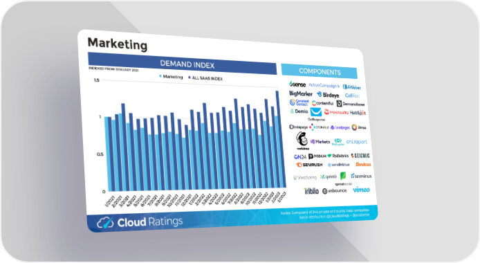 Marketing DEMAND INDEX COMPONENTS INDEXED FROM JANUARY 2021 Marketing ALL SAAS INDEX 1.5 1 0.5 0 1 1 1 1 1 1 1 1 1 1 1 1 2 2 2 2 2 2 2 2 2 2 2 2 3 3 3 2 2 2 2 2 2 2 2 2 2 2 2 2 2 2 2 2 2 2 2 2 2 2 2 2 2 2 0 0 0 0 0 0 0 0 0 0 0 0 0 0 0 0 0 0 0 0 0 0 0 0 0 0 0 2 2 2 2 2 2 2 2 2 2 2 2 2 2 2 2 2 2 2 2 2 2 2 2 2 2 2 / / / / / / / / / / / / / / / / / / / / / / / / / / / 1 1 2 3 5 7 2 1 1 1 4 6 8 9 0 3 2 3 1 2 4 5 6 7 9 2 8 0 1 1 1 1 1 Notes: Composed of 340 private and public SaaS companies Social Attribution: @CloudRatings + @SaaSletter