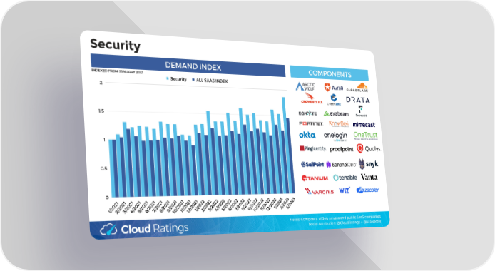 Security DEMAND INDEX COMPONENTS INDEXED FROM JANUARY 2021 Security ALL SAAS INDEX 2 1.5 1 0.5 0 1 1 1 1 1 1 1 1 1 1 1 1 2 2 2 2 2 2 2 2 2 2 2 2 3 3 3 2 2 2 2 2 2 2 2 2 2 2 2 2 2 2 2 2 2 2 2 2 2 2 2 2 2 2 0 0 0 0 0 0 0 0 0 0 0 0 0 0 0 0 0 0 0 0 0 0 0 0 0 0 0 2 2 2 2 2 2 2 2 2 2 2 2 2 2 2 2 2 2 2 2 2 2 2 2 2 2 2 / / / / / / / / / / / / / / / / / / / / / / / / / / / 1 1 2 3 5 7 2 1 1 1 4 6 8 9 0 3 2 3 1 2 4 5 6 7 9 2 8 0 1 1 1 1 1 Notes: Composed of 340 private and public SaaS companies Social Attribution: @CloudRatings + @SaaSletter
