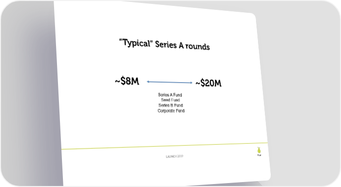 Seed Financing Landscape Page 34 Page 36!35 “Typical” Series A rounds ~$8M ~$20M Series A Fund Seed Fund Series B Fund Corporate Fund LAUNCH 2019 Pear