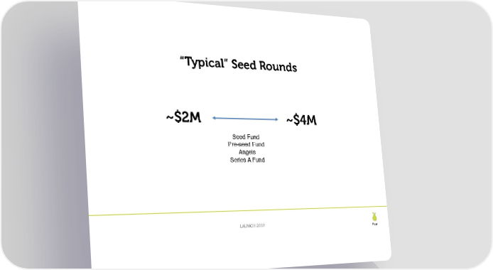 !23 “Typical” Seed Rounds ~$2M ~$4M Seed Fund Pre-seed Fund Angels Series A Fund LAUNCH 2019 Pear