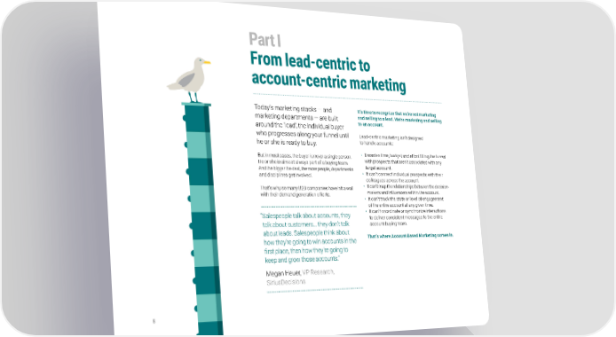 Part I From lead-centric to account-centric marketing Today’s marketing stacks — and It’s time to recognize that we’re not marketing marketing departments — are built and selling to a lead. We’re marketing and selling around the ‘lead’, the individual buyer to an account. who progresses along your funnel until Lead-centric marketing isn’t designed he or she is ready to buy. to handle accounts: But in most cases, the buyer is never a single person. • It wastes time, budget and effort filling the funnel He or she is almost always part of a buying team. with prospects that aren’t associated with any And the bigger the deal, the more people, departments target account. and disciplines get involved. • It can’t connect individual prospects with their colleagues across the account. That’s why so many B2B companies have hit a wall • It can’t map the relationships between the decision- with their demand generation efforts. makers and influencers within the account. • It can’t track the state or level of engagement of the entire account at any given time. “ Salespeople talk about accounts, they • It can’t coordinate or synchronize interactions to deliver consistent messages to the entire talk about customers… they don’t talk account buying team. about leads. Salespeople think about That’s where Account Based Marketing comes in. how they’re going to win accounts in the first place, then how they’re going to keep and grow those accounts.” Megan Heuer, VP Research, SiriusDecisions 5