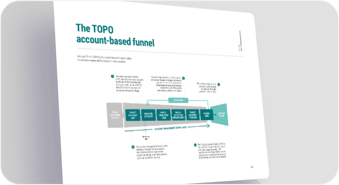 s e s s e c o The TOPO r M p B III 7 A t e r a h account-based funnel P T Analyst firm TOPO’s Account-Based Funnel also illustrates many of the ideas in this section. The ideal Customer Profile Account expansion is a critical part of (ICP) identifies the most valuable an account-based strategy and should accounts for the organization align to the same account-based The ultimate impact of an to target. A well-defined ICP is milestones as acquiring net-new account-based strategy imperative to the success of customers, even though the is significantly higher an account-based strategy. underlying activities are unique. customer lifetime value. EXPANSION IDEAL TARGET ENGAGED SALES- SALES- TARGET CLOSED LIFETIME CUSTOMER ACCOUNT ACCOUNT QUALIFIED ACCEPTED ACCOUNT WON VALUE PROFILE LIST LEAD OPPORTUNITY PIPELINE ACCOUNT ENGAGEMENT SCORE (AES) Minimum AES The Account Engagement Score is the The Target Account Pipeline (TAP) is definitive measure of an account’s the value of all opportunities created interactions with an organization, with your target accounts. TAP across marketing, sales development, replaces earlier-stage metrics as the sales and customer success. primary way to measure the success of marketing and sales development. 124
