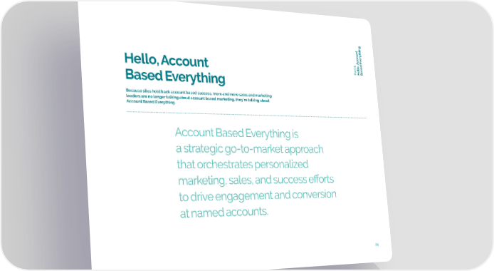 t ounerything cv c art 5ello, A Hello, Account PHBased E Based Everything Because silos hold back account based success, more and more sales and marketing leaders are no longer talking about account based marketing, they’re talking about Account Based Everything. Account Based Everything is a strategic go-to-market approach that orchestrates personalized marketing, sales, and success efforts to drive engagement and conversion at named accounts. 24