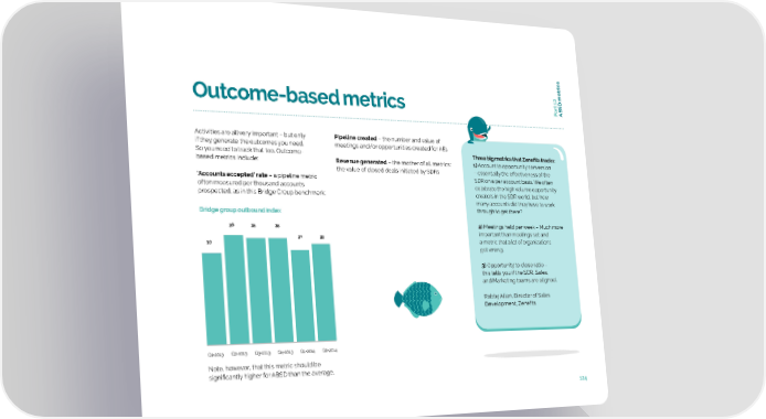 trics art 12 Outcome-based metrics P ABSD me Activities are all very important – but only Pipeline created – the number and value of if they generate the outcomes you need. meetings and/or opportunities created for AEs So you need to track that too. Outcome- Three big metrics that Zenefits tracks: based metrics include: Revenue generated – the mother of all metrics: 1) Account to opportunity conversion the value of closed deals initiated by SDRs – essentially the effectiveness of the ‘Accounts accepted’ rate – a pipeline metric SDR on a per account basis. We often often measured per thousand accounts celebrate the high volume opportunity prospected, as in this Bridge Group benchmark: creators in the SDR world, but how many accounts did they have to work Bridge group outbound index through to get there? 36 35 35 2) Meetings held per week – Much more 31 33 important than meetings set and 30 a metric that a lot of organizations get wrong. 3) Opportunity to close ratio – this tells you if the SDR, Sales, and Marketing teams are aligned. Robby Allen, Director of Sales Development, Zenefits Q1-2013 Q2-2013 Q3-2013 Q4-2013 Q1-2014 Q2-2014 Note, however, that this metric should be significantly higher for ABSD than the average. 124