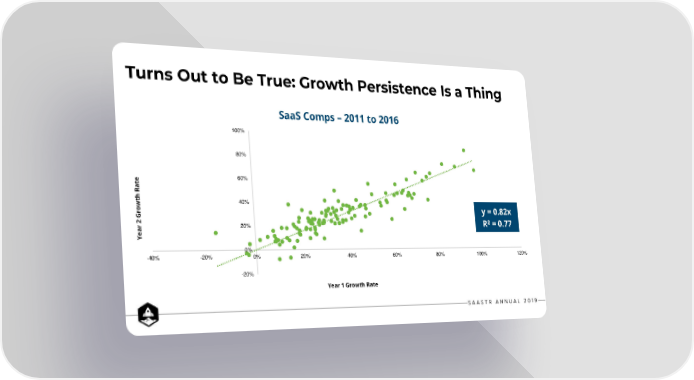 Turns Out to Be True: Growth Persistence Is a Thing SaaS Comps –2011 to 2016 100% 80% et 60% a R hwt 40% roG y = 0.82x 2 r 20% R² = 0.77 Yea 0% -40% -20% 0% 20% 40% 60% 80% 100% 120% -20% Year 1 Growth Rate