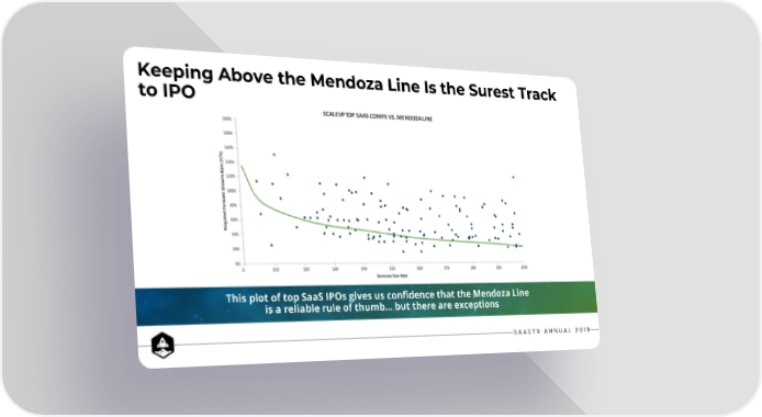 The Mendoza Line For SaaS Growth Page 16 Page 18Keeping Above the Mendoza Line Is the Surest Track to IPO This plot of top SaaS IPOs gives us confidence that the Mendoza Line is a reliable rule of thumb… but there are exceptions