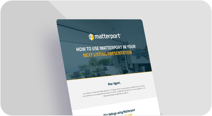 DURING YOUR PRESENTATION When meeting on-site with your prospective client, follow your standard listing presentation process. If you meet the home sellers at their property, keep an eye out for “selling” features such as Italian marble floors or original crown molding that you can suggest to indicate with Mattertag™ Posts later on in the presentation. Open the Matterport 3D Showcase App on your iPad, iPhone, or computer and run through your pitch (see #3 above). Don’t forget the following features/selling points of a Matterport 3D showcase you practiced. Let your client engage with the 3D Space on your device. Let them walk through a space and experience what it’s like. Trust us - they will love it! For a true closer, bring out your VR headsets. Simply open the CoreVR app on your Android phone (downloaded from night before), place into the Google Cardboard or Samsung GearVR unit and let the experience take them away. We’ve put together a Frequently Asked Questions doc if the seller has any questions. AFTER YOUR PRESENTATION Always makes sure to follow up with home sellers after your presentation. Provide them with an easily accessible link to remind them what you can offer them. Use this link in your follow up messages: https://my.matterport.com/show/?m=uRGXgoiYk9f. You can also use this embed code on a custom property landing page as well: GET MATTERPORT Once you win the listing, it’s time to order Matterport. To do so visit: www.matterport.com and select Buy or Find a Photographer in the navigation bar. For questions or suggestions, please email . Thank you. 5