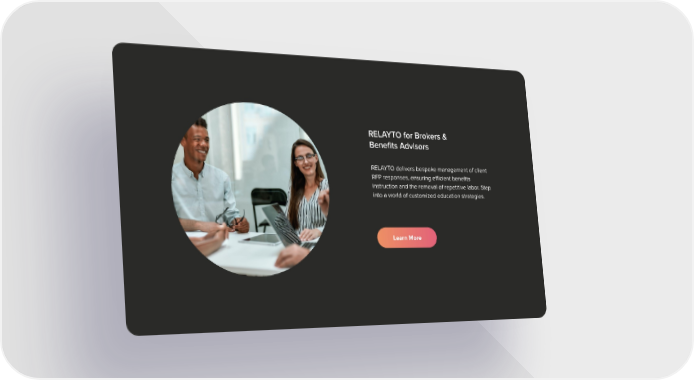 RELAYTO for Brokers & Benefits Advisors RELAYTO delivers bespoke management of client RFP responses, ensuring efficient benefits instruction and the removal of repetitive labor. Step into a world of customized education strategies. Learn More