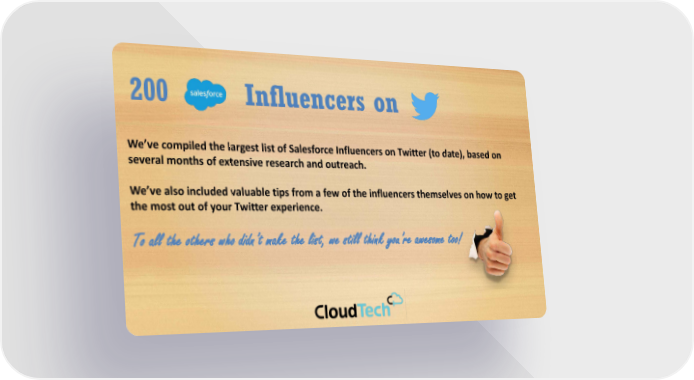 200 Influencers on We’ve compiled the largest list of Salesforce Influencers on Twitter (to date), based on several months of extensive research and outreach. We’ve also included valuable tips from a few of the influencers themselves on how to get the most out of your Twitter experience. To all the others who didn’t make the list, we still think you’re awesome too!