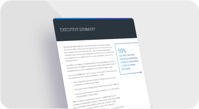 EXECUTIVE SUMMARY The stakes are high for decision makers involved in B2B purchases of solutions and services. While companies are still highly motivated to find new tools to lower costs, increase efficiency or drive higher ROI, they are also personally vested in selecting vendors who help best manage risks around factors such as deployment 59% time, integration and any other factors that may impair business performance or say they now have delay time to value. According to the findings of Demand Gen Report’s 7th Annual B2B Buyer’s Survey, a formal buying groups growing focus on risk mitigation is increasing the number of stakeholders involved in or buying committees buying decisions, as well as adding length and complexity to buying journeys. in place to review A few of the highlights from the 2017 survey—which polled 283 C-level executives, purchases. VPs and Directors across various B2B industries—include: • 59% of respondents say they now have formal buying groups or buying committees in place to review purchases; • 52% say the number of buying group members increased significantly; and • 86% say purchase decisions are often accelerated or put on hold based on changing business needs/priorities. While B2B buying has always been noted as a “considered” purchase, the emphasis on consideration continues to climb as survey participants provided direct commentary on how added attention to risk mitigation is adding checkpoints and new criteria at different stages of the buying cycle. One director pointed out that the research and vendor analysis stages now involve different team members with different points of view. “When we are looking into implementing a new system, we need to involve those who will be in it to ensure it is easy to use and will actually deliver on what we need. Some of us are involved in doing the research portion and coming up with a consideration set, so different people are involved in different phases of the purchase journey.” One CEO added that team member recommendations are having a strong influence before getting his stamp of approval. “We plan investments as part of the budget cycle (including justification as needed) and then the buying happens with the right stakeholders doing research and me making the final decision based primarily on their input.” The following report provides a deep dive into how risk mitigation and added complexity across the buying journey is changing behavior and influencing the decision-making process, with specific analysis of increasing relevancy, prioritizing personalization early in the buying journey, and how buying insights fuel better sales conversations. 2017 B2B Buyer’s Survey Report • 2
