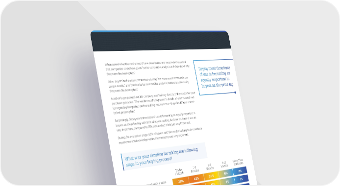 US EOS VOLUPTAQUID UNTUMQU IDEBIT DOLUPTIBUS, CONSED UTEM IL IN RE When asked what the vendor could have done better, one respondent asserted that companies could have given “better competitive analysis and data about why Deployment time/ease they were the best option.” Other buyers had similar comments including: “Be more sensitive towards our of use is becoming as unique needs,” and “provide better competitive analysis, better data about why equally important to they were the best option.” buyers as the price tag. Another buyer pointed out his company was looking directly to the vendor for post- purchase guidance. “The vendor could bring specific details of what to watch out for regarding integration and consulting requirements—they should have a semi- baked project plan.” Surprisingly, deployment time/ease of use is becoming as equally important to buyers as the price tag, with 80% of buyers ranking deployment/ease of use as very important, compared to 75% who ranked pricing as very important. During the evaluation stage, 63% of buyers said the vendor’s ability to demonstrate experience and knowledge within their industry was very important. What was your timeline for taking the following steps in your buying process? Under 1-3 3-6 6-12 More Than 1 Month Months Months Months 12 Months Spoke to and engaged with a sales 29% 43% 20% 5% 2% rep from the vendor I selected Collected preliminary 33% 39% 19% 7% 1% information on pricing/costs Brought in other team members to 28% 38% 17% 6% 3% help with research process Sought input from industry 19% 31% 15% 7% 1% analysts/consultants Sought input fr om peers/existing 25% 32% 18% 7% 2% users in the community Accepted outreach from vendors and 22% 41% 22% 6% 2% engaged in calls/demos Sought RFP/competitive bids/pricing 14% 37% 21% 7% 1% info from a select list of providers 2017 B2B Buyer’s Survey Report • 4