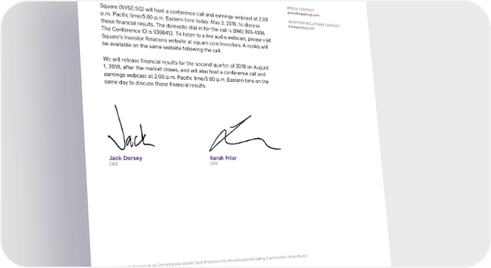 Earnings Webcast MEDIA CONTACT [email protected] Square (NYSE:SQ) will host a conference call and earnings webcast at 2:00 INVESTOR RELATIONS CONTACT p.m. Pacific time/5:00 p.m. Eastern time today, May 2, 2018, to discuss [email protected] these financial results. The domestic dial-in for the call is (866) 393-4306. The Conference ID is 9398412. To listen to a live audio webcast, please visit Square’s Investor Relations website at square.com/investors. A replay will be available on the same website following the call. We will release financial results for the second quarter of 2018 on August 1, 2018, after the market closes, and will also host a conference call and earnings webcast at 2:00 p.m. Pacific time/5:00 p.m. Eastern time on the same day to discuss those financial results. Jack Dorsey Sarah Friar CEO CFO 1 How to Survive in an Omnichannel World: Best Practices for Omnichannel Retailing, Euromonitor International 2 Merchant Machine 3 Tackling financial exclusion: A country that works for everyone? 11