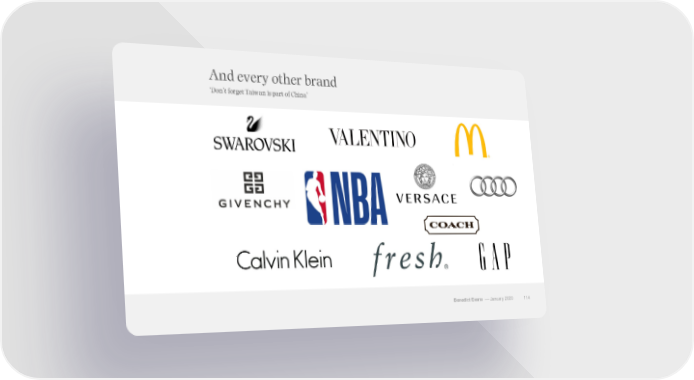 2020 Ben Evans at Davos Page 113 Page 115And every other brand ‘Don’t forget Taiwan is part of China’ Benedict Evans –– January 2020 114
