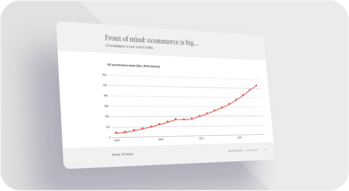 2020 Ben Evans at Davos Page 13 Page 15Front of mind: ecommerce is big… US ecommerce is now over $500bn US ecommerce sales ($bn, 2019 dollars) 600 500 400 300 200 100 0 2000 2005 2010 2015 Source: US Census Benedict Evans –– January 2020 14