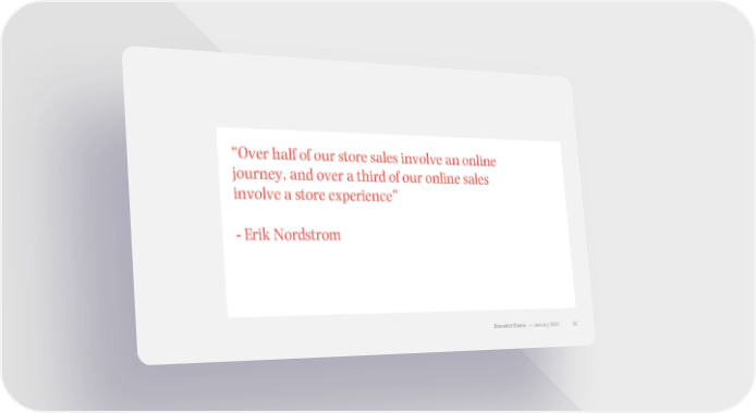 “Over half of our store sales involve an online journey, and over a third of our online sales involve a store experience” - Erik Nordstrom Benedict Evans –– January 2020 32