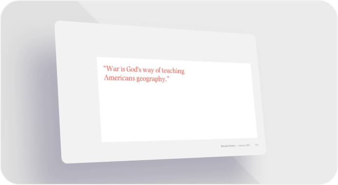βWar is God's way of teaching Americans geography.β Benedict Evans ββ January 2020 103