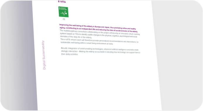 ESG / Sustainability Report / 2022 ESG / Sustainability Report / 2022 EVITA PARTNERSHIP FOR INNOVATION: SUSTAINABLE MOBILITY AROUND MONTE BIANCO (3) (13) Improving the well-being of the elderly in Europe and Japan, thus promoting active and healthy aging, contributing to an independent life and reducing the risks of social exclusion of the elderly. Sustainable mobility tools and applications for Espace Mont-Blanc areas. The multidisciplinary consortium collaborating on this project will develop an innovative virtual coaching The challenge is that of a supply chain project which integrates and provides visibility to local system based on TICs to identify subtle changes in the physical, cognitive, psychological and social companies that manage mobility and/or services, so as to offer eco-friendly solutions characterized by domains of the daily life of the elderly. specific adaptability to the mountain region, to residents and tourists alike. The innovation partnership The e-VITA virtual coach will therefore provide personalized recommendations and interventions, for aims to create an innovative sustainable mobility product in the Espace Mont Blanc (EMB) region and sustainable well-being within a smart living environment at home. was created based on the desire to seek out green mobility solutions (goods, services or a combination Digital Sustainability of these) suited to a mountain context. Results: Integration of smart enabling technologies, advanced artificial intelligence and tailor-made This cross-border initiative involves France, Switzerland and Italy, which are all sparsely populated in dialogic interaction - Making the elderly accountable in deciding how technology can support them in those areas, but have a high number of tourists during the peak traveling season. their daily activities The project creates an integrated technological solution to meet the sustainable mobility requirements of tourists and residents and provide visibility to sustainable mobility services/operators. Furthermore, it promotes sites of cultural interest through virtual visits and supports decision-makers in monitoring the solution and planning decisions. The initiative encompasses a car sharing solution, offered by the partner Alpine Green Experience srl, which can combine the use of electric vehicles to get around the Digital Sustainability EMB with stays in local accommodations. Engineering defines, develops and validates the technological solution consisting of the back office, a mobile app and dashboard and the creation of virtual tours of specific sites. The “PPI” innovation partnership is implemented as part of the “Routes around Monte Bianco” Alcotra France-Italy Interreg cross-border cooperation project. Results: Increase in the use of eco-sustainable vehicles; Visibility of green mobility businesses/services; Integration of mobility data; Promotion of sites of cultural interest 74 Engineering © Engineering © 75
