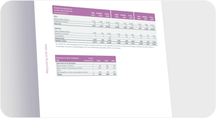 ESG / Sustainability Report / 2022 ESG / Sustainability Report / 2022 Perfomance tables PERSONNEL DATA GRI 2-7 2-8 401-1 405-1 Number of employees by Total workforce as contract type and gender MEN WOMEN TOTAL MEN WOMEN TOTAL MEN WOMEN TOTAL of December 31 by geographical as of December 31 2022 2022 2022 2021 2021 2021 2020 2020 2020 area and gender (includes employees and other non-subordinate Unavailable* 2022 2021 2021 2021 2020 2020 2020 ITALY employment contracts) 2022 2022 Open-ended contract 7,334 3,440 10,774 6,829 3,175 10,004 7,056 3,184 10,240 Fixed-term contract 18 11 29 26 14 40 45 24 69 Northern Italy 3,149 1,547 - 4,696 2,877 1,449 4,326 3,195 1,548 4,743 Italy total 7,352 3,451 10,803 6,855 3,189 10,044 7,101 3,208 10,309 Central Italy 2,894 1,419 - 4,313 2,704 1,331 4,035 2,732 1,306 4,038 Southern Italy and Italian Islands 1,309 485 - 1,794 1,274 409 1,683 1,174 354 1,528 ABROAD Brazil 645 225 - 870 540 181 721 552 167 719 Open-ended contract 1,014 354 1,368 1,115 372 1,487 948 313 1,261 Belgium 15 18 6 39 27 18 45 10 14 24 Fixed-term contract 6 2 8 20 20 40 50 12 62 Serbia - - 273 273 160 67 227 162 55 217 Unavailable* - - 367 - - - - - - Argentina 7 1 - 8 5 1 6 2 0 2 Abroad total 1,020 356 1,743 1,135 392 1,527 998 325 1,323 USA 121 25 11 157 127 25 152 64 10 74 GRAND TOTAL 8,372 3,807 12,546 7,990 3,581 11,571 8,099 3,533 11,632 Germany 163 65 20 248 199 80 279 181 70 251 Norway 0 0 - 0 0 0 0 0 0 0 * Reporting and data For 2022, for some employees of the Group’s foreign companies, it was possible to reconstruct only the overall figure relating to the total number of Luxembourg 0 0 - 0 0 0 0 0 0 0 employees, but not the detailed figure with the specification of gender and the contract type Spain 15 5 - 20 14 6 20 15 7 22 Great Britain 18 5 4 27 5 0 5 0 0 0 Romania 0 0 - 0 0 0 0 0 0 0 France 3 2 12 17 15 3 18 0 1 1 Ireland 0 0 - 0 0 0 0 1 0 1 Disclosure on other employees - Unit of Switzerland 9 1 - 10 13 1 14 11 1 12 Italy measurement 2022 2021 2020 India 5 4 41 50 15 8 23 0 0 0 Lavoratori al 31 dicembre Malaysia 0 0 - 0 2 0 2 0 0 0 Total number of interns n. 116 195 113 Mexico 15 5 - 20 7 2 9 0 0 0 Total number of temporary workers n. 228 192 210 Hungary 4 0 - 4 6 0 6 0 0 0 Other Altro specificare 0 0 . 0 0 0 0 0 0 0 Reporting and data Seconded from other associated company n. 644 461 407 GROUP TOTAL 8,372 3,807 367 12,546 7,990 3,581 11,571 8,099 3,533 11,632 TOTAL n. 988 848 730 * For 2022, for some employees of the Group’s foreign companies, it was possible to reconstruct only the overall figure relating to the total number of employees, but not the detailed figure with the specification of gender 96 Engineering © Engineering © 97