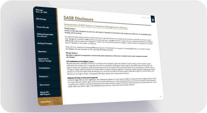 FNV: TSX | NYSE 109 Incorporation of ESG Factors in Investment Management & Advisory SASB Disclosure FN-AC-410a.1 Amount of assets under management, by asset class, that employ (1) integration of environmental, social, and governance (ESG) issues, (2) sustainability themed investing, and (3) screening As a royalty and stream company, we do not exercise control over or have direct influence on the projects over which we have an interest. We do not have any “assets under management”, as defined by SASB, and we do not provide supervisory or management services in respect of any of our investments. Consequently, this quantitative SASB standard relating to assets under management in respect of securities portfolios supervised or managed by investment advisors is not applicable to our company and such information is not included in our disclosure. Please refer to our responses to the following SASB accounting metric (FN-AC-410a.2) for our approach to incorporating ESG factors in our investment processes and strategies, which are conducted in all of our new royalty and stream acquisitions. FN-AC-410a.2 Description of approach to incorporation of environmental, social, and governance (ESG) factors in investment and/or wealth management processes and strategies ESG Considerations in Due Diligence Process We believe that proper consideration of ESG risks in connection with the companies, projects and jurisdictions in which we seek to invest will enhance long-term performance of our company and in turn generate real value for our shareholders. Accordingly, we conduct a rigorous review of ESG issues and risks during our due diligence process when evaluating all royalty and stream opportunities. As each opportunity varies considerably based upon the commodity-type, jurisdiction, nature of the royalty or stream interest (e.g. whether such interest relates to a historical third-party arrangement or is being newly created), among other things, we apply a flexible approach to our ESG due diligence review and frequently rely on local ESG consultants for their expert guidance. Please refer to pages 9-10 of this ESG Report, which describes our due diligence process, including specific ESG factors assessed, when making investment decisions. Mitigating ESG Risks in Contractual Arrangements In order to mitigate ESG risks, when negotiating all new investments we endeavour to include provisions to afford our company with access to ongoing reporting in respect of a project, audit and inspection rights, and security and remedies. Additionally, we include operating covenants (e.g. requirement of operators to conduct operations in accordance with responsible practices and applicable law) and transfer restrictions intended to ensure that we remain partnered with a responsible actors when it comes to ESG-related issues. Refer to page 11 of this ESG Report, which describes in further detail these contractual protections.
