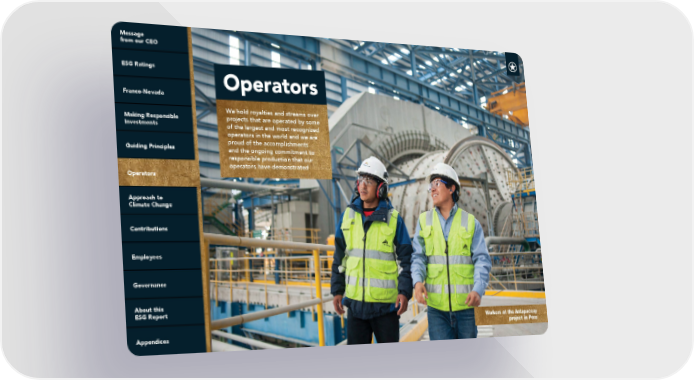We hold royalties and streams over projects that are operated by some of the largest and most recognized operators in the world and we are proud of the accomplishments and the ongoing commitment to responsible production that our operators have demonstrated Workers at the Antapaccay project in Peru