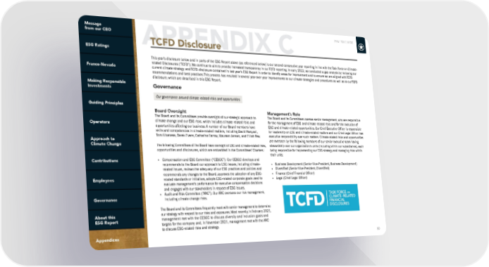 FNV: TSX | NYSE 80 APPENDIX C TCFD Disclosure This year’s disclosure below and in parts of the ESG Report above (as referenced below) is our second consecutive year reporting in line with the Task Force on Climate- related Disclosures (“TCFD”). We continue to aim to provide increased transparency in our TCFD reporting. In early 2022, we conducted a gap analysis by reviewing our current climate strategy and TCFD disclosure contained in last year’s ESG Report in order to identify areas for improvement and to ensure we are aligned with TCFD recommendations and best practices. This process has resulted in several year-over-year improvements to our climate strategies and procedures as well as to our TCFD disclosure, which are described in this ESG Report. Governance Board Oversight The Board and its Committees provide oversight of our strategic approach to climate change and our ESG risks, which includes climate-related risks and opportunities affecting our business. A number of our Board members have skills and competencies in climate-related matters, including David Harquail, Tom Albanese, Derek Evans, Catharine Farrow, Maureen Jensen, and Elliott Pew. The following Committees of the Board have oversight of ESG and climate-related risks, opportunities and disclosures, which are embedded in the Committees’ Charters: • Compensation and ESG Committee (“CESGC”): Our CESGC develops and recommends to the Board our approach to ESG issues, including climate- related issues, reviews the adequacy of our ESG practices and policies and recommends any changes to the Board, approves the adoption of any ESG- related standards or initiatives, adopts ESG-related corporate goals used to evaluate management’s performance for executive compensation decisions and engages with our stakeholders in respect of ESG issues. • Audit and Risk Committee (“ARC”): Our ARC oversees our risk management, including climate change risks. The Board and its Committees frequently meet with senior management to determine our strategy with respect to our risks and exposures. Most recently, in February 2021, management met with the CESGC to discuss diversity and inclusion goals and targets for the company and, in November 2021, management met with the ARC to discuss ESG-related risks and strategy. Management’s Role The Board and its Committees oversee senior management, who are responsible for the management of ESG and climate-related risks and for the execution of ESG and climate-related opportunities. Our Chief Executive Officer is responsible for leadership on ESG and climate-related matters and our Chief Legal Officer has executive responsibility over such matters. Climate-related risks and opportunities are overseen by the following members of our senior executive team having stewardship over our organization’s units (including within our subsidiaries), each being responsible for implementing our ESG strategy and managing risks within their units: • Business Development (Senior Vice-President, Business Development) • Diversified (Senior Vice-President, Diversified) • Finance (Chief Financial Officer) • Legal (Chief Legal Officer) Our governance around climate-related risks and opportunities