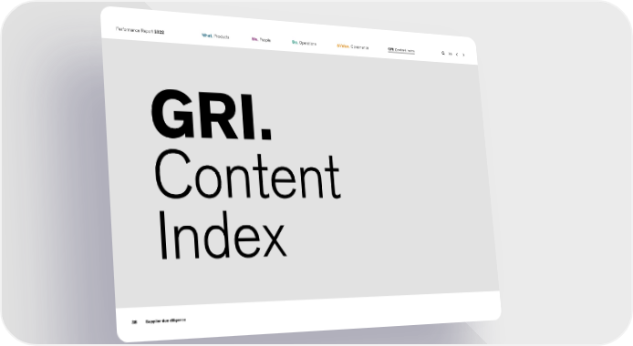 Performance Report 2022 What. Products We. People Do. Operations & Value. Governance GRI Content Index GRI. Content Index 3838 Supplier due diligence