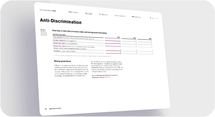 Performance Report 2022 What. Products We. People Do. Operations & Value. Governance GRI Content Index Anti-Discrimination GRI 406-1: Overview of Anti-Discrimination data and background information Incidents of discrimination and corrective Anti-Discrimination 2022 2021 2020 actions taken Total number of incidents of discrimination during the reporting period 1 3 1 Incident reviewed by the organization 1 3 1 Remediation plans being implemented 1 3 1 Remediation plans that have been implemented, with results reviewed 1 through routine internal management review processes 2 2 1 Incident no longer subject to action 2 2 1 1 At the end of the reporting phase, one case was still subject to remedial action plans being implemented in 2021. Strong governance Our Anti-discrimination and -harassment policy is valid for the whole organization. Complaints are registered through At Beckers, we value every employee equally and actively our grievance system or other programs. The incident promote an increasingly inclusive work environment with mentioned in 2022 was reported directly to the CHRO. The zero discrimination, equal opportunities and inclusion. We case has been handled according to our procedure and is are aware of the possible risks of workplace discrimination no longer subject to action. and accompanying challenges, and face these strongly. Accordingly, we condemn all forms of discrimination. For our Management Approach concerning Governance, please click here. 16 Anti-Discrimination
