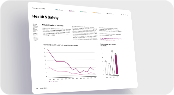 Performance Report 2022 What. Products We. People Do. Operations & Value. Governance GRI Content Index Health & Safety GRI 403-8 Reduced number of accidents But while some accidents still occurred, less severe Our workers are covered by a health and safety Workers consequences such as slips, trips or falls were registered. management system. Nine of our sites are certified covered by an occupational At Beckers, we aim at being a role model for well-being and These incidents did not happen at the workstations, but with ISO 45001 which covers 50 percent of our employees. health and safety have the clear goal of zero accidents by 2030. We track rather when colleagues were in motion in between tasks. management and measure our progress via Lost Time Injuries (LTI) and The most common factors were lack of attention or taking The data is collected and tracked via our global health system Total Recordable Injuries (TRI). Our TRI frequency rate shortcuts, but also inadequate work methods or workplace and safety management system. GRI 403-9: reduced slightly in 2022. arrangement and management. All registered accidents Work-related injuries have been analyzed carefully and appropriate measures For our Management Approach concerning Safety GRI 403-10: have been put in place to prevent even these minor events. and well-being, please click here. Work-related ill health Total recordable injury frequency Lost time injuries (LTI) and LTI rate (per million hours worked) rate (TRIFR) 35 6 35 5.35 30 5 28 4.63 25 21 4 20 3.0 3 15 2.22 14 2 10 7 1 5 0 0 0 2010 2011 2012 2013 2014 2015 2016 2017 2018 2019 2020 2021 2022 2019 2020 2021 2022 LTIs LTI rate 18 Health & Safety