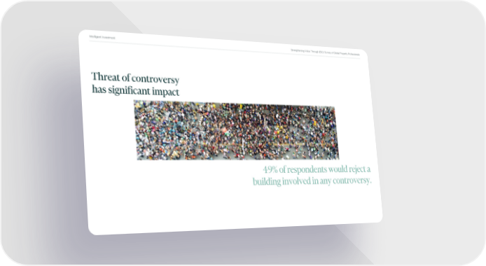 Intelligent Investment Strengthening Value Through ESG | Survey of Global Property Professionals Threat of controversy has significant impact 49% of respondents would reject a building involved in any controversy.