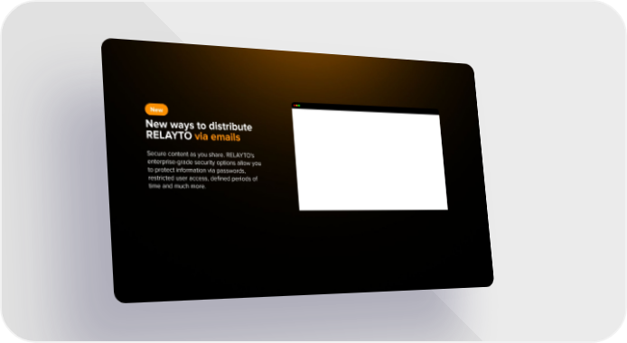 New New ways to distribute RELAYTO via emails Secure content as you share. RELAYTO's enterprise-grade security options allow you to protect information via passwords, restricted user access, deļ¬ned periods of time and much more.
