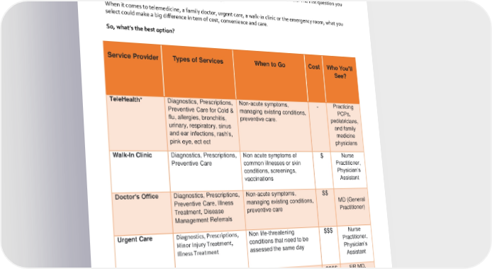 2023 Benefits Guide Health Savings Account (HSA) (continued) How to Stretch your HSA Funds When you experience an accident or illness, you may have more questions than answers. The first question you need to answer is where to go to get medical care. When it comes to telemedicine, a family doctor, urgent care, a walk-in clinic or the emergency room, what you select could make a big difference in tern of cost, convenience and care. So, what’s the best option? Service Provider Types of Services When to Go Cost Who You’ll See? TeleHealth* Diagnostics, Prescriptions, Non-acute symptoms, - Practicing Preventive Care for Cold & managing existing conditions, PCPs, flu, allergies, bronchitis, preventive care. pediatricians, urinary, respiratory, sinus and family and ear infections, rash’s, medicine pink eye, ect ect physicians Walk-In Clinic Diagnostics, Prescriptions, Non acute symptoms of $ Nurse Preventive Care common illnesses or skin Practitioner, conditions, screenings, Physician’s vaccinations Assistant Doctor’s Office Diagnostics, Prescriptions, Non-acute symptoms, $$ Preventive Care, Illness managing existing conditions, MD (General Treatment, Disease preventive care Practitioner) Management Referrals Urgent Care Diagnostics, Prescriptions, Non life-threatening $$$ Nurse Minor Injury Treatment, conditions that need to be Practitioner, Illness Treatment assessed the same day Physician’s Assistant Emergency Room Anything relating to Life threatening, sudden- $$$$ ER MD, triage/diagnosis + onset pain, acute injuries trauma stabilization of a serious or surgeon, critical injury or illness Paramedic *For the 2023 plan year, WestCare has enrolled every benefit eligible employee and their dependents in TelaDoc at no cost to employees. When trying to stretch your HSA dollars, consider the below options when medical care is needed. 16 16 WestCare