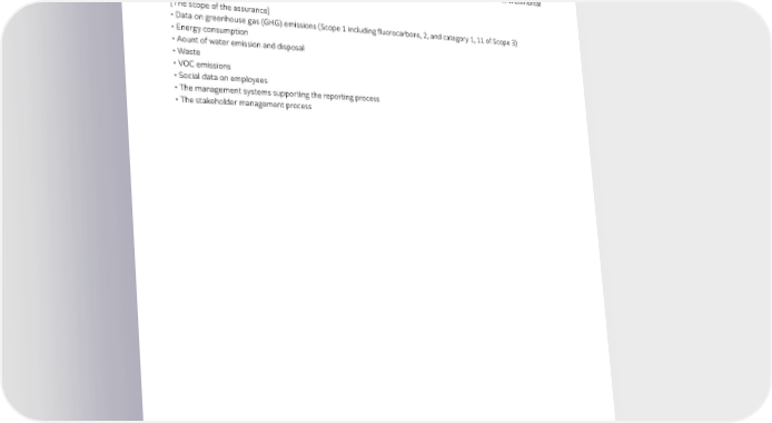 IInnddepepenenddenentt A Assssuurraannccee R Repepoorrtt 6 | Independent Assurance Report 6 Independent Assurance Report FUJIFILM Holdings Corporation commissioned SGS Japan Inc. to conduct an independent assurance of the environmental and social data contained in its Sustainability Report 2023. [The scope of the assurance] • D ata on greenhouse gas (GHG) emissions (Scope 1 including fluorocarbons, 2, and category 1, 11 of Scope 3) • E nergy consumption • A ount of water emission and disposal • Waste • V OC emissions • S ocial data on employees • T he management systems supporting the reporting process • T he stakeholder management process 142 FUJIFILM Holdings Corporation Sustainability Report 2023