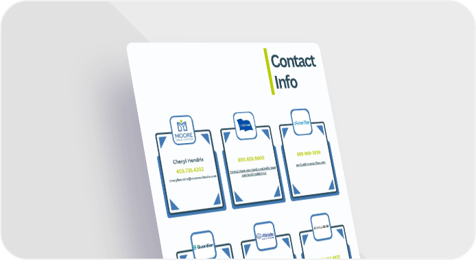 Contact Info Cheryl Hendrix 888-868-3539 800.628.8600 405.735.4202 [email protected] https://www.standard.com/individual [email protected] /contact/contact-us 888.482.7342 800.726.6033 800.682.4822 https://www.guardianlife.com/ https://www.allstate.com/help- https://www.chubb.com contact-us support/contact