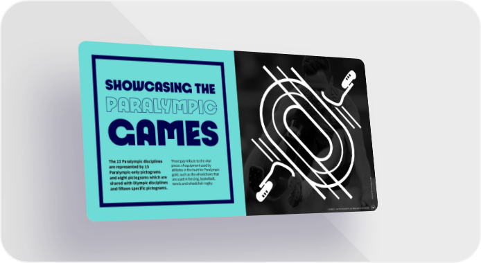 SHOWCASING THE PARALYMPIC GAMES The 23 Paralympic disciplines Those pay tribute to the vital are represented by 15 pieces of equipment used by Paralympic-only pictograms athletes in the hunt for Paralympic and eight pictograms which are gold, such as the wheelchairs that shared with Olympic disciplines are used in fencing, basketball, es tennis and wheelchair rugby. tty Imag and 昀椀昀琀een speci昀椀c pictograms. o/Ge © Carmen Mandat 48 CHAP. 3 – 62 PICTOGRAMS, 62 BADGES OF HONOUR 23