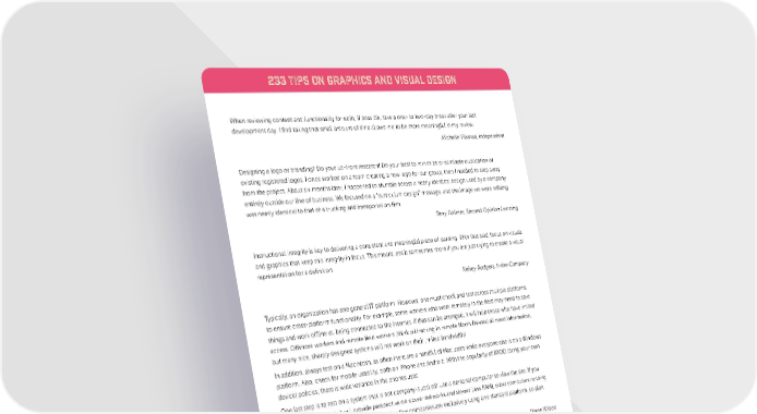 233 TIPS ON GRAPHICS AND VISUAL DESIGN When reviewing content and functionality for edits, if possible, take a one- to two-day break after your last development day. I find taking that small amount of time allows me to be more meaningful in my review. Michelle Vilamaa, independent Designing a logo or branding? Do your up-front research! Do your best to minimize or eliminate duplication of existing registered logos. I once worked on a team creating a new logo for our group, then I needed to step away from the project. About six months later, I happened to stumble across a nearly identical design used by a company entirely outside our line of business. We focused on a “curriculum design” message, and the image we were refining was nearly identical to that of a trucking and transportation firm. Terry Follmer, Second Opinion Learning Instructional integrity is key to delivering a consistent and meaningful piece of learning. With that said, focus on visuals and graphics that keep this integrity in focus. This means less is sometimes more if you are just trying to create a visual representation for a definition. Kelsey Rodgers, Irvine Company Typically, an organization has one general IT platform. However, one must check and test across multiple platforms to ensure cross-platform functionality. For example, some workers who work remotely in the field may need to save things and work offline vs. being connected to the Internet. If that can be arranged, it will help those who have limited access. Offshore workers and remote field workers (think oil fracking in remote North Dakota) all need information, but many nice, sharply designed systems will not work on their limited bandwidth! In addition, always test on a Macintosh, as often there are a handful of Mac users while everyone else is on a Windows platform. Also, check for mobile usability, both on iPhone and Android. With the popularity of BYOD (bring your own device) policies, there is wide variance in the phones used. One last step is to test on a system that is not company-supplied! Use a personal computer to view the site. If you have remote workers, it will provide perspective on slower networks and slower (less RAM), older computers running Windows 7, Windows 8, and Windows 10. Very few companies are exclusively using one standard platform, so plan accordingly. Diane Wilson There’s a couple of things to remember when testing for quality and integrity that most designers never think of. Always remember who your customers are—or who your customer’s customer is. You have the knowledgeable end users, the afflicted, and the oblivious. The knowledgeable users don’t know what they really need to know, so give them more value. The afflicted have a problem, and you need to try to solve it for them. The oblivious don’t even know they have a problem, so use every resource to ensure your solution is easy and informative, and bring them to a happy conclusion. Ken Weatherford, Technical Writer Training 55 www.eLearningGuild.com