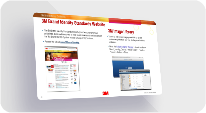 3M Brand Identity Guidelines 3M Brand Identity Standards Website The 3M Brand Identity Standards Website provides comprehensive 3M Image Library guidelines, tools and resources to help users understand and implement Library of 3M-owned imagery available for all 3M the 3M Brand Identity System across a range of applications. businesses globally to use free of charge and with no Access the site at www.3M.com/identity. limitations. Go to the Celum-Synergy Website > Asset Location > Brand_Identity_Catalog > Image Library > People > Product > Pattern > Place 44 3M Confidential. 30 Oc©to be3Mr 2013. All Rights Reserved.