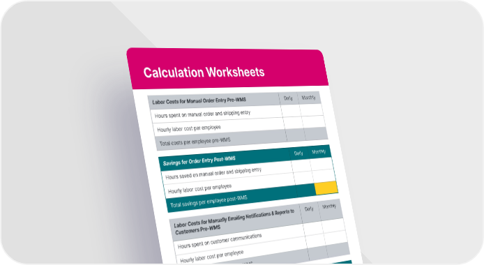 3PL Guide to Calculating ROI for Warehouse Management System Software Page 15 Page 17Calculation Worksheets extensiv.com | 833.983.6748 16