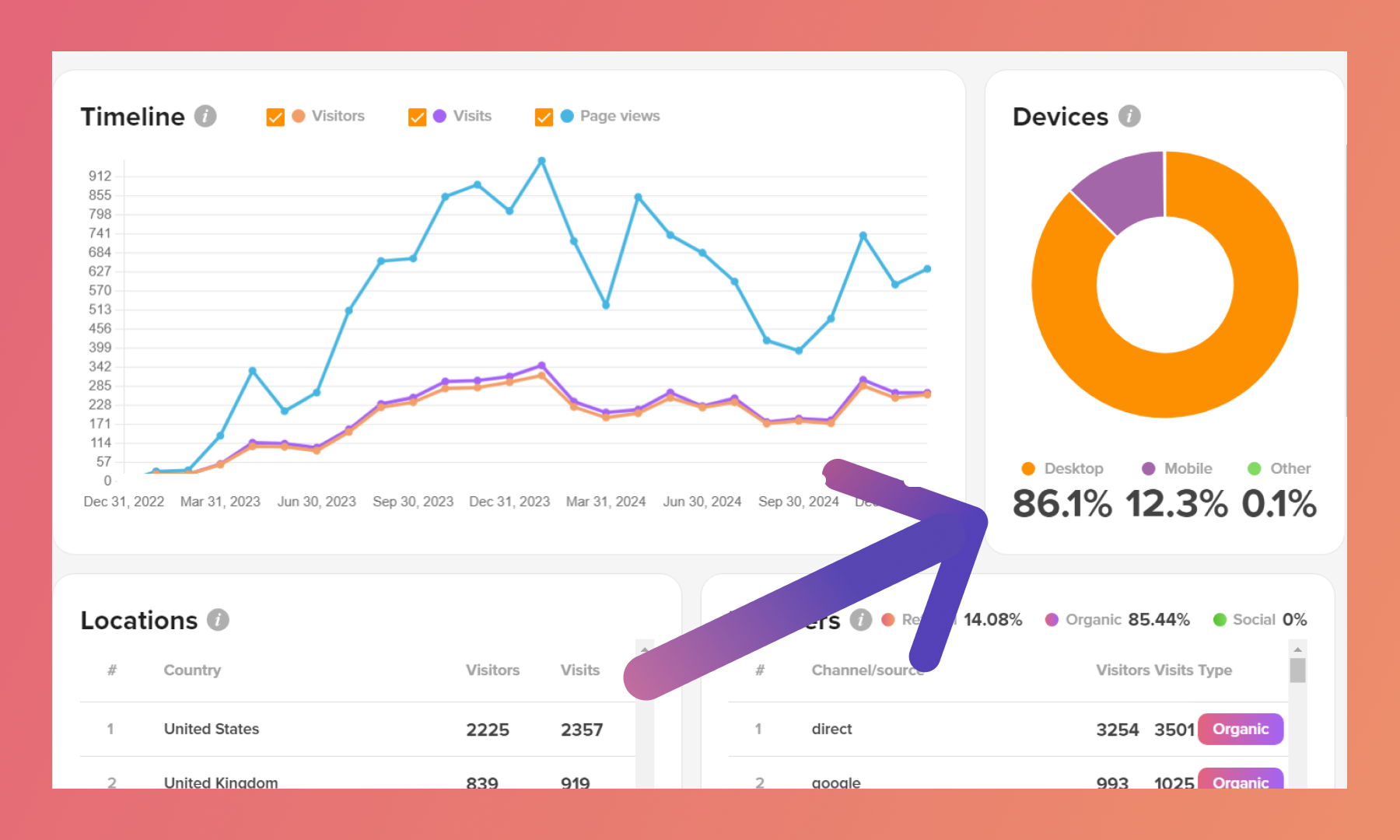The Devices section shows which devices viewers use to access the hub and its content. This includes data on desktops, tablets, and mobile devices, helping you optimize the experience for your audience's preferred platforms.