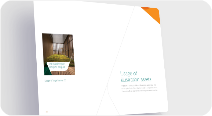53 There are a variety of different illustrations and shapes that make up the look of the Alliance brand. It is important to use them correctly to maintain the look they are meant to evoke. Usage of illustration assets At quiderepre porpor sequia Usage of large banner (7).