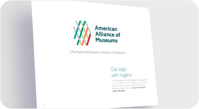 22 Champion Museums. Nurture Excellence. The Alliance tagline "Champion Museums. Nurture Excellence." projects a balance of the strength and openness that the brand embodies. Its brevity, directness, simplicity and timelessness reinforces the Alliance messaging. Logo is not required to appear with tagline. Our logo with tagline