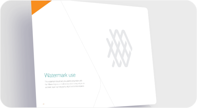 41 Watermark use The watermark should only be used in conjunction with the Alliance logo as a small, tertiary detail acting only as an aesthetic layer to photography, digital and collateral pieces.