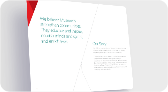 4 Our Story Since 1906, the American Alliance of Museums (The Alliance) has been helping to develop standards and best practices, providing advocacy and gathering knowledge for the entire museum community. A 501(c)(3) public charity, the Alliance is a member-based organization with broad-based departments and programs including the Accreditation and Museum Assessment Program, Museums Advocacy Day, AAM Annual Meeting & Museum Expo, Museum Magazine, the Center for the Future of Museums and AAM Press. The Alliance also offers professional development, publishes professional literature, and increasingly works internationally. We believe Museums strengthen communities. They educate and inspire, nourish minds and spirits, and enrich lives. 4