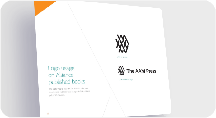 AAM Brand Book Page 32 Page 3433 The black "Weave" logo and the AAM Press logo are the elements that need to be incorporated into Alliance published materials. Logo usage on Alliance published books The AAM Press 01 Weave logo 02 AAM Press logo