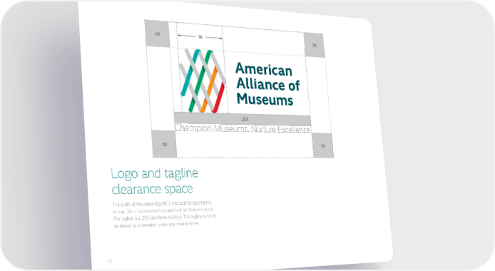 23 .5X .5X .5X .5X Champion Museums. Nurture Excellence. .25X 1X Logo and tagline clearance space The width of the weave logo 1X is the basis for spacing the lockup. .5X is the minimum requirement for clearance space. The tagline is a .25X drop from the logo. The tagline is not to be altered or abbreviated under any circumstances.