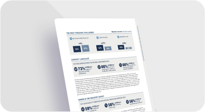 T H E 1 2 T H U THE MOST PRESSING CHALLENGES NATURAL RESOURCES CROSS INDUSTRY N I T E D N A 1 INFLATION & PRICE VOLATILITY 2 CLIMATE CHANGE 3 BIODIVERSITY LOSS T I O N S G L 4% O 17% B R A L 24% L C O 57% M 53% 51% P 34% 42% A 18% C T - A C C E N E T U R A CURRENT LANDSCAPE E C E The natural resources industry is O S TOP RESILIENCE ACTIONS FOR NATURAL RESOURCES CEOS T U facing a massive transformation D Y – once a historically human-S of CEOs are of CEOs are of CEOs are engaging in upskilling or strengthening intensive industry, the industry is R73% 66% 66% now rapidly embracing technology. long-term strategic reskilling their workforce scenario planning and partnerships for the future labor market analysis capabilities The adoption of drones, robotics, and data analytics are radically OU Climate change and biodiversity loss are two core challenges particularly top of mind for natural resources CEOs. As a resource- changing the way the industry can intensive industry, many companies are engaging in restoration efforts to halt and reverse further degradation. With greater scrutiny manage raw materials in real time. Ufrom the public, natural resources companies are also extending their reach to engage meaningfully with communities. Since most natural resource companies’ plants or manufacturing locations are contingent on a region’s landscape, it is critical that companies engage with their communities to help mitigate potential social, economic, or environmental risks from operations. T V Narendran, CEO & MD of Tata Steel, notes, “The steel industry is an integral part of the global economy and as a responsible corporate citizen, we will continue with our efforts to engage with different stakeholders to spearhead development of new technologies to decarbonise steel.” Further, to gain trust from the global community, natural resource companies are increasing their collaboration with supply chain partners to operate with greater transparency. WHERE IS THE INDUSTRY GOING? ATR TOP SUSTAINABILITY PRIORITIES FOR NATURAL RESOURCES SERVICES CEOS “It’s important that geopolitics of CEOs are of CEOs are of CEOs are investing in minimizing lowering doesn’t stall the climate agenda. 59% 56% 56% As companies, we need to keep skills development water usage greenhouse gas emissions climate change front and center as an issue that we all must address.” CThe natural resources industry is particularly focused on reducing its environmental impacts, specifically around water usage and N GHG emissions, and restoring biodiversity and ecosystems. Leveraging technologies, such as drones and geospatial mapping, can help Praveen Singhavi, businesses use resources more efficiently and precisely while promoting healthier ecosystems. Circularity is also a rising topic, with President of APRIL Groupmining companies leading the charge, embedding circularity within site operations to eliminate mineral waste streams and limit raw material extraction. E TRANSFORMATIVE INNOVATIONS 68% Ecosystem restoration Circular business models of production to limit material extraction 53% S Real-time supply chain data ecosystem health 38% Digital modeling of ecosystem health 33% Precision factory 33% 3-D printed parts for industrial machinery 30% Robotics-enabled mining 25% Asteroid and deep-sea mining 12% HIGH IMPACT MODERATE IMPACT LOW IMPACT NO IMPACT 112 113