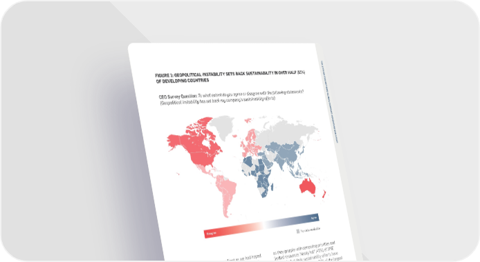 T H E 1 2 T FIGURE 1: GEOPOLITICAL INSTABILITY SETS BACK SUSTAINABILITY IN OVER HALF (51%) H U AS WE APPROACH THE HALFWAY MARK TO ACHIEVE THE 2030 N I T OF DEVELOPING COUNTRIES E AGENDA, CEOS REMAIN COMMITTED TO DELIVERING THE SDGS. D N A T I YET THEY ARE SOUNDING THE ALARM THAT MORE ACTION AND O N SUPPORT ARE NEEDED TO RESCUE THE GLOBAL GOALSCEO Survey Question: To what extent do you agree or disagree with the following statements? S G L (Geopolitical instability has set back my company’s sustainability efforts) O B A L C O M P A THE WORLD CANNOT ACHIEVE THE SDGS – their highest level ever. Climate finance is C T - A ON OUR CURRENT TRAJECTORYstill dangerously short of the USD 100 billion C C E goal. An additional 10 million hectares of forest N T U We are nearly at the halfway mark to 2030, R were destroyed in 2021, bringing nearly 40,000 E C the shared deadline when we plan to achieve 1 E species to be at risk of extinction.” O S the Sustainable Development Goals (SDGs). T U D While progress has been made, the world Global leaders recognize that this is the moment Y remains drastically behind where it needs to be. to take action. Secretary General of the United For example, the Paris Agreement sought to limit Nations, António Guterres, in his 2022 address global temperature rise to 1.5° Celsius by the to the UN General Assembly remarked, “A world end of the century, but the latest United Nations without extreme poverty, want or hunger is not Framework Convention on Climate Change an impossible dream. It is within reach. That is (UNFCCC) report illustrates that current climate the world envisaged by the 2030 Agenda and the pledges would put the world on track to reach Sustainable Development Goals. But it is not the 2.5° Celsius by 2100 — a scenario that would world we seem to have chosen. Because of our lead to cataclysmic impacts for the world.decisions, sustainable development everywhere is at risk. The SDGs are issuing an SOS.” 2 The instability of the past three years, marked by the global pandemic, climate change impacts, This sentiment is echoed by business leaders and geopolitical conflicts, has set the world in the private sector. As CEO of Intrepid Travel, Disagree Agree even further behind. As Susan Chodakewitz, James Thornton, states, “Businesses and President and Chief Executive Officer of Nathan No data available Associates notes, “We are at the midpoint of governments still have a lot more to progress achieving the SDGs, and we are seeing a relapse on the SDGs. Unfortunately, inequalities are in terms of democratic systems and economic widening, and communities are being left more vulnerable.”“The world is not as resilient as we had hoped. as they grapple with competing priorities and achievements. When we look at the state of the Societal structures including democracy are limited resources.Nearly half (49%) of SME world, we are moving backwards.”failing us as we try to tackle huge challenges CEOs felt that their sustainability efforts have GLOBAL INSTABILITY IS FURTHER such as climate change and inequality.” been impacted, as opposed to 36% of the largest The UN Sustainable Development Goals Report RISKING THE SDGS, SETTING BACK 4 companies. As Gurpreet Singh Minhas, Director 2022 puts the situation in even more dire terms: SUSTAINABILITY PROGRESSGeopolitical instability is also amplifying of Harman Finochem Limited notes, “Our “Four years of poverty reduction has been erased existing pressures, such as expanding supply ability to achieve sustainability commitments is by the pandemic, with the working poverty rate While a variety of challenges in the last half chain disruptions, increasing price volatility, hindered by the lack of long-term commitments rising for the first time in two decades. Women decade have influenced progress on the SDGs, and intensifying resource shortages. As CEOs from major stakeholders and policymakers, the accounted for 39% of global employment in current geopolitical instability risks their deal with these impacts in the short term, inaccessibility of useful technology, and lack 2019, but 45% of global employment losses in achievement. Globally, 87% of CEOs feel that sustainability efforts are being disrupted, as of access to affordable finance and resources.” 2020. Progress on electrification has slowed — current levels of geopolitical instability limit shown by the 43% of CEOs who agree that Karen James, Chief Executive Officer of Business on today’s pace there would still be 679 million the world’s ability to achieve the SDGs. The geopolitical instability has set back their for Development, adds, “There is limited support people without electricity in 2030. Our reliance fallout is leaving CEOs with limited confidence sustainability efforts. In particular, both from government and financial institutions for on natural resources is only increasing — rising in multilateralism as they work to achieve the companies in the developing world, as well as SMEs, especially when it comes to sustainability. Global Goals. As the President and CEO of Novo 3 Their risk appetite is too low now, which makes it 65% globally between 2000 and 2019. Energy small and medium-sized enterprises (SMEs) related CO emissions increased 6% in 2021 Nordisk A/S, Lars Fruergaard Jørgensen, notes, globally, are facing the strongest headwinds difficult for us to survive.” 2 1. The United Nations Economic Commission for Europe (2022) Halfway to 2030: UNECE report shows we must accelerate progress 3. Defined as companies with less than USD 25 million in annual revenue. 14to achieve SDGs in the region. 2. United Nations (2022) Secretary-General’s address to the General Assembly.4. Defined as companies with greater than USD 1 billion in annual revenue.15