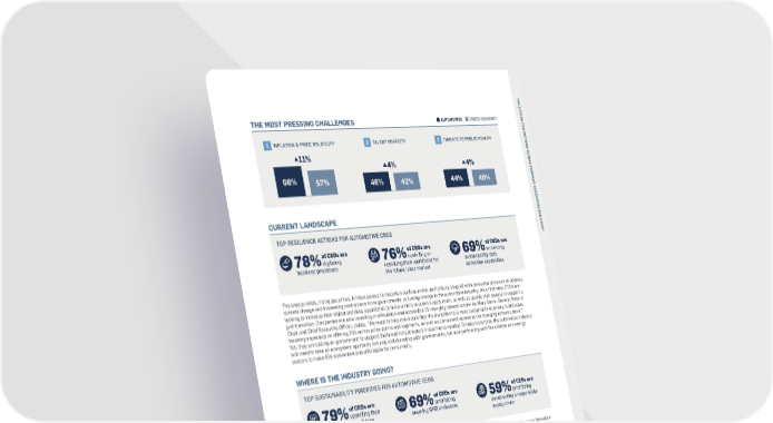 T H E 1 2 T H U THE MOST PRESSING CHALLENGES AUTOMOTIVE CROSS INDUSTRY N I T E D N A 1 INFLATION & PRICE VOLATILITY 2 TALENT SCARCITY 3 THREATS TO PUBLIC HEALTH T I O N S G 11% L O B 4% 4% A L C O 68% 57% M 46% P 42% 44% 40% A Global decarbonization efforts, C T - E A fueled by climate change concerns C C E N and fuel price changes, are T U R shaping the long-term outlook CURRENT LANDSCAPE E C E for the automotive industry. V O S T While companies are struggling TOP RESILIENCE ACTIONS FOR AUTOMOTIVE CEOS U D with logistics in the short term, I Y of CEOs are of CEOs are of CEOs are including price volatility, supply digitizing upskilling or enhancing 78% 76% 69% chain disruptions, and infrastructure business processes reskilling their workforce for sustainability data needs, they remain committed the future labor market collection capabilities to trends like electrification and circular product management to The energy crisis, rising gas prices, limited access to materials such as nickel and lithium, coupled with consumer pressure to address unlock the green transition. climate change and increasing restrictions from governments, is fueling change in the automotive industry. As a first step, CEOs are looking to increase their digital and data capabilities to build a more resilient supply chain, as well as upskill their people to support a OT just transition. Companies are also investing in affordable and accessible EV charging infrastructure. As Mary Barra, General Motors’ Chair and Chief Executive Officer, states, “We want to help make sure that the transition to a more sustainable economy is inclusive, focusing especially on offering EVs across price points and segments, as well as convenient access to the charging infrastructure.” Yet, they are calling on government to support the broad infrastructure investments needed. To truly transform, the automotive industry will need to take an ecosystem approach, not only collaborating with governments, but also partnering with the utilities and energy M sectors to make EVs convenient and affordable for consumers. WHERE IS THE INDUSTRY GOING? TOP SUSTAINABILITY PRIORITIES FOR AUTOMOTIVE CEOS “The automotive industry is experiencing an irreversible trend of CEOs are of CEOs are of CEOs are upskilling their prioritizing prioritizing 79% 69% 59% in electrification. This is key to workforce for the future lowering GHG emissions constructing a responsible achieving a net zero economy. labor market supply chain The magnitude of change electrification brings may have TO parallels drawn only to the In the future, sustainability in the automotive industry will go beyond switching from fossil-fuel engines to EVs, to addressing the entire transition from horse-drawn lifecycle of a vehicle, from design and manufacturing through to end-of-life. Circular product management, supported by strong digital carriages to internal combustion and data management capabilities to enable traceability, is a promising solution for CEOs. It not only satisfies the growing focus on engines in the early 1900s.” Usustainability, but also addresses issues such as resource scarcity and price volatility of raw materials. Girish Wagh, Executive Director of Tata Motors LimitedTRANSFORMATIVE INNOVATIONS A Electrification 64% Circular vehicle lifecycle management 63% Software-connected vehicles 58% Real-time supply chain data management 51% HIGH IMPACT MODERATE IMPACT LOW IMPACT NO IMPACT 92 93